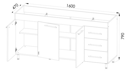 1.60m Ancho x 0.47m Prof. x 0.80m de Alto