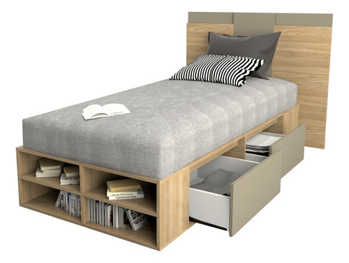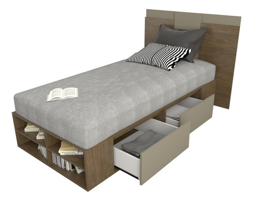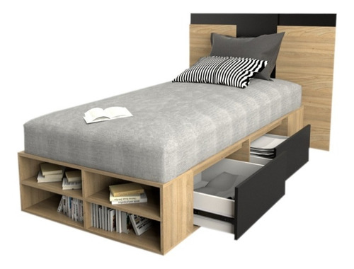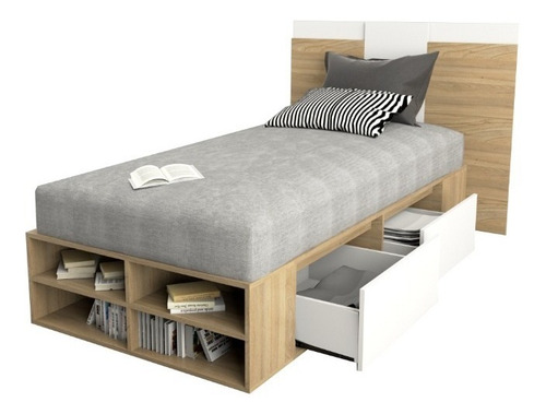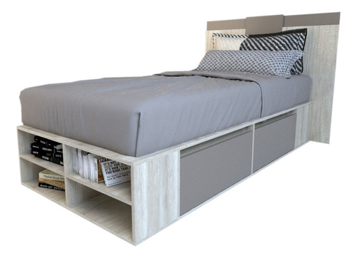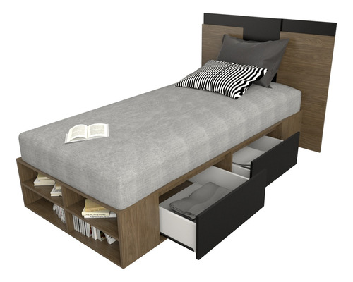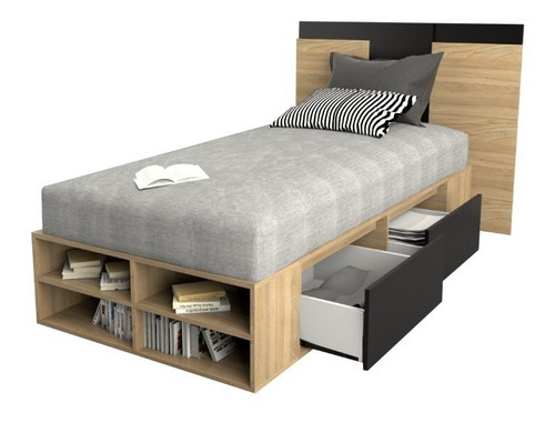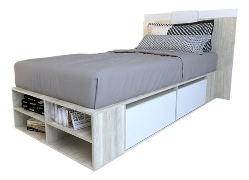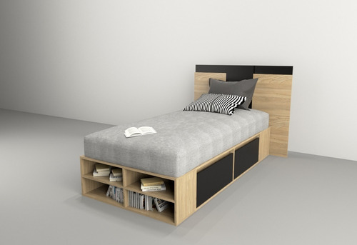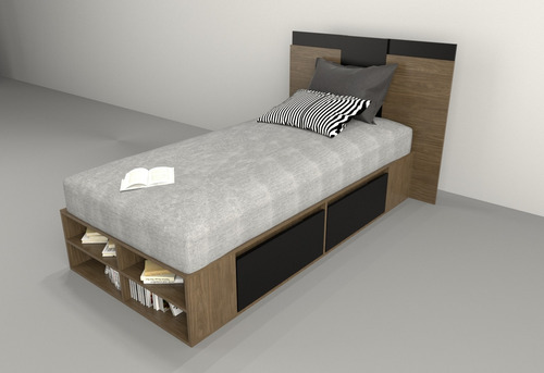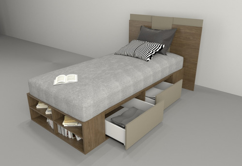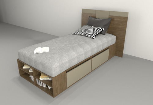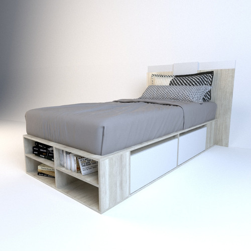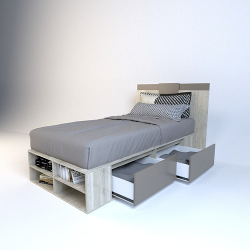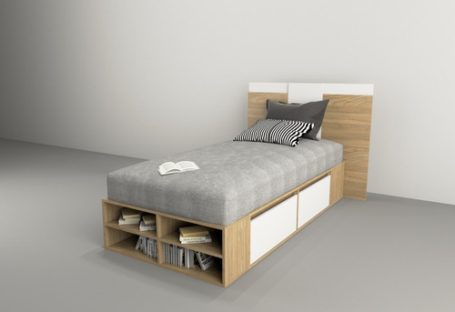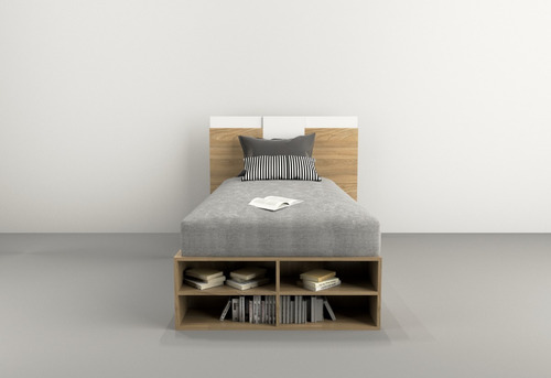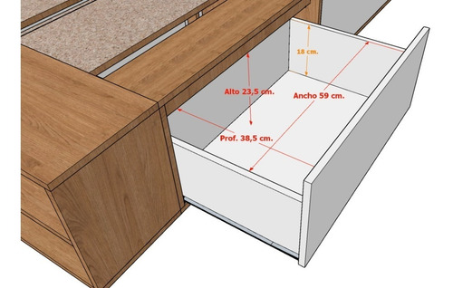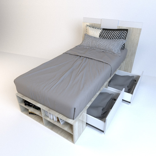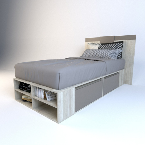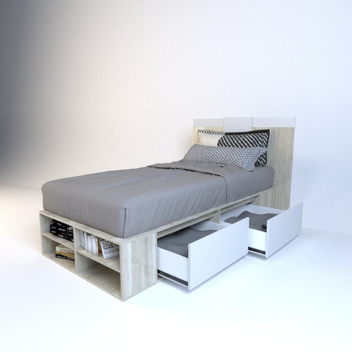 El box, ofrece un amplio espacio de guadado. Cuenta con cuatro cajones (dos cajones a cada lado) con correderas metálicas y estantes zapateros en la piecera. Mientras que el respaldo, brinda a la habitación estilo, coronando a la cama con una personalidad única.