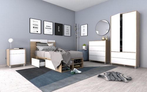 Nuestro nuevo COMBO JUVENIL de la linea MINIMAL de Table´s para colchones de 1 plaza redefine la elegancia y sofisticación con su funcional y compacto diseño, brindando la solución de almacenamiento necesaria para mantener el orden y la organización del ambiente sin sacrificar su estilo.