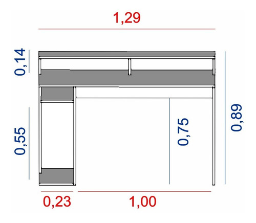 1,29 de ancho x 0,89 de Alto x 0,60 mts. de Profundidad