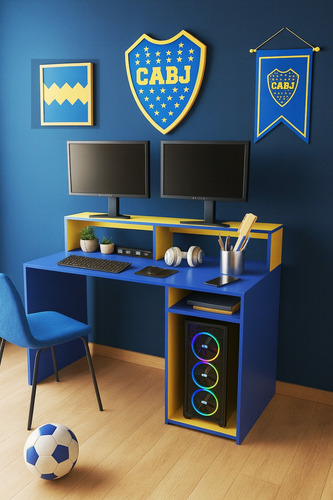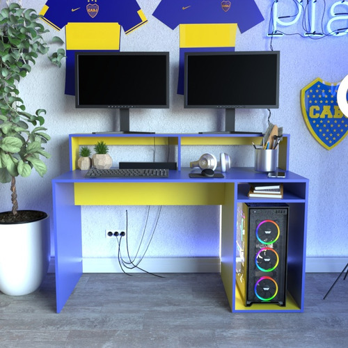 ¡Programá tu zona de juego! Resistente y espacioso, el escritorio AMV es perfecto para quienes buscan un mueble amplio que soporte el peso de consolas, televisores, grandes pantallas y otros dispositivos requeridos para jugar largas horas. Creá el ambiente idóneo, y pasá al siguiente nivel.