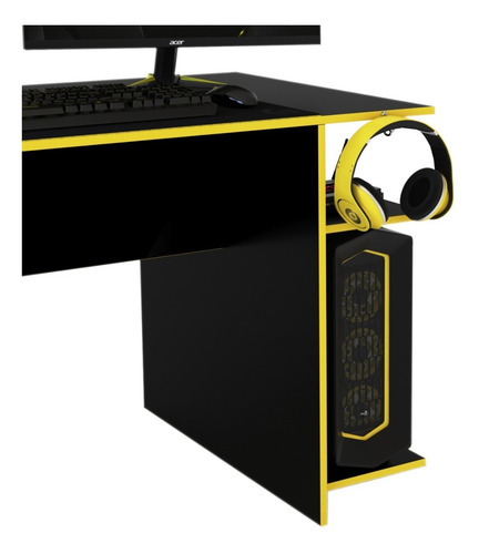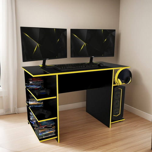 Con un amplio espacio de trabajo y estantes de almacenamiento, este escritorio gamer es una adición imprescindible para cualquier configuración de juego.