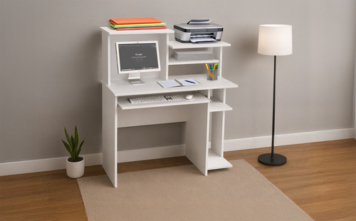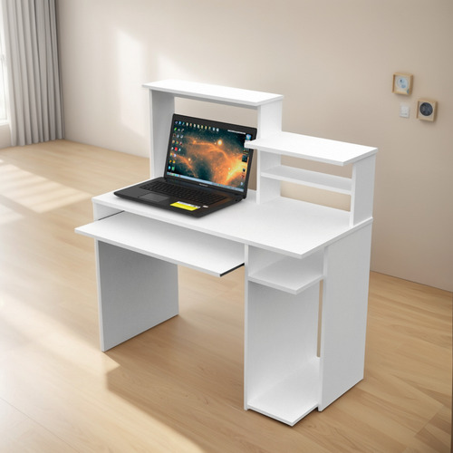Diseñado para proporcionar una experiencia de trabajo cómoda y eficiente, este escritorio cuenta con una bandeja porta-teclado extraíble, una amplia superficie de trabajo y gran cantidad de estantes ideales para tener a mano todo aquello que requiera de un rápido y fácil acceso a la hora de realizar las tareas.