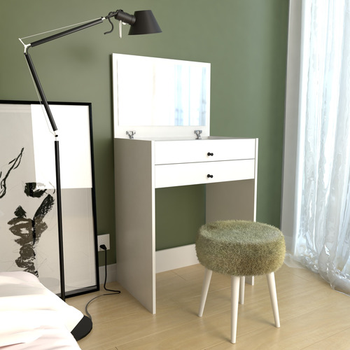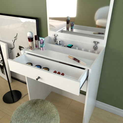 Versatil y multifuncional, este maquillador se convierte en una mesa de trabajo cuando el espejo no está en uso, brindando una cómoda superficie plana para poder realizar tus tareas diarias de trabajo, estudio o tu pasatiempo preferido.