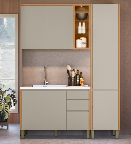 Diseño moderno y elegante: su combinación en tono madera nature y frente en color off white lo hace adaptable a cualquier estilo de cocina, living o espacio de guardado.