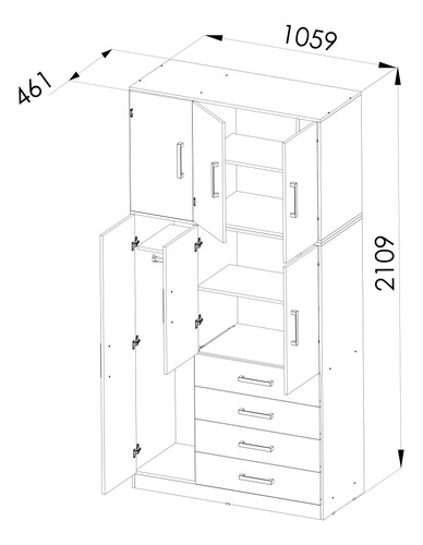 Placard Ropero 6 Puertas de Abrir / 4 Cajones / Melamina